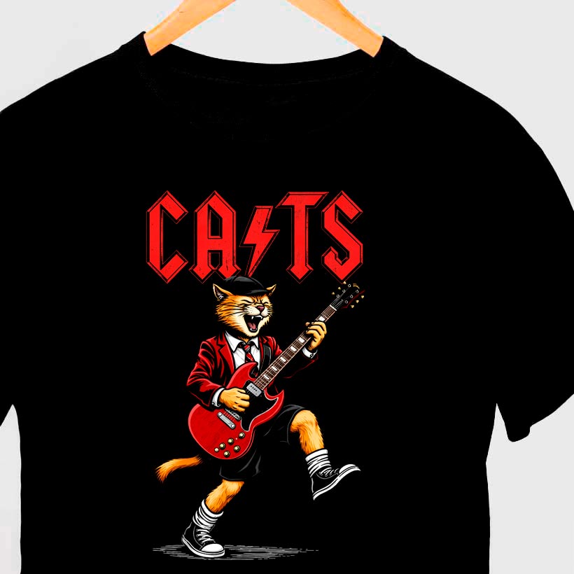 Camiseta Cats com mangas curtas na cor preta premium