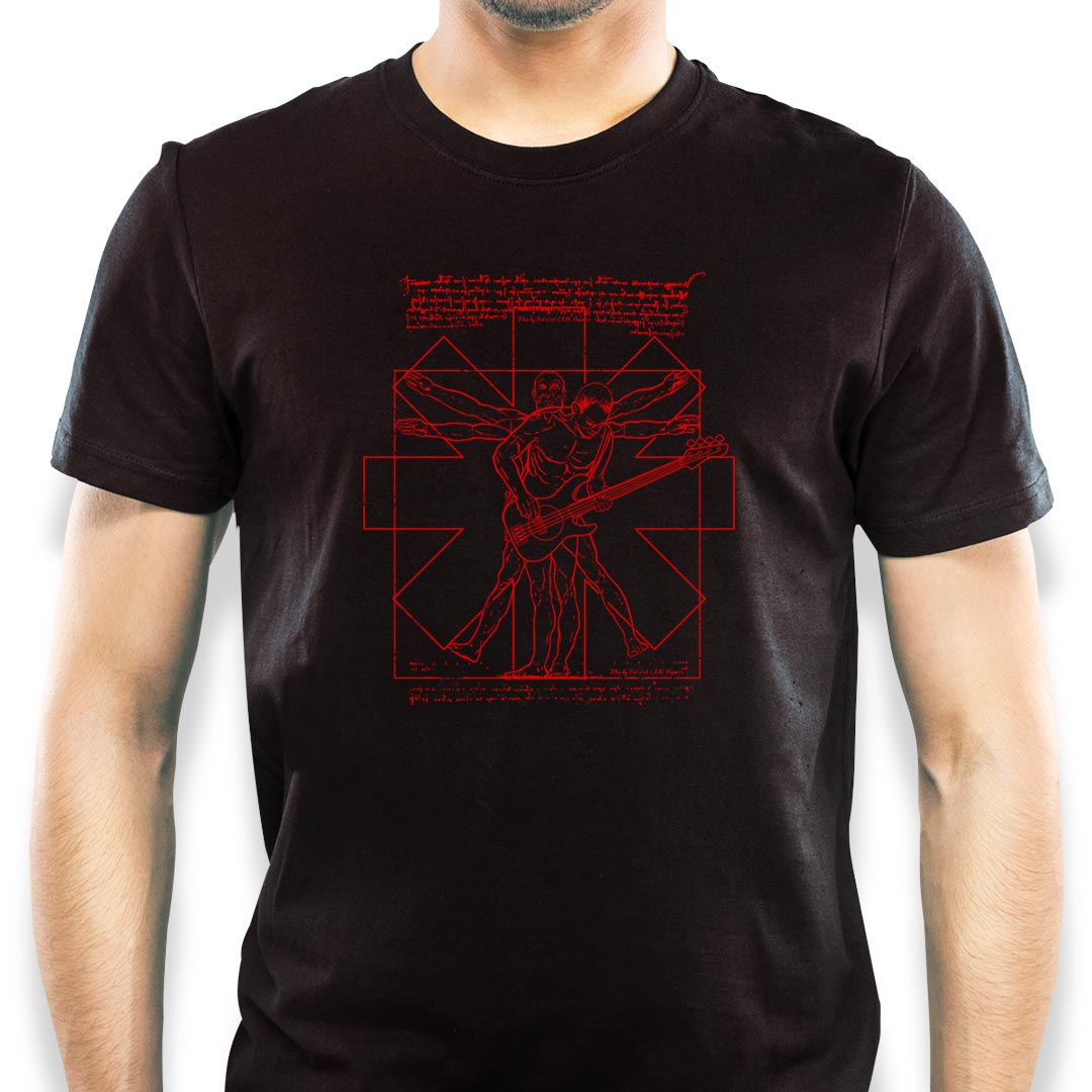 Camiseta 100% algodão com oFlea, baixista da banda Red Hot Chili Peppers, no formato do Homem Vitruviano de Leonardo Da Vinci.