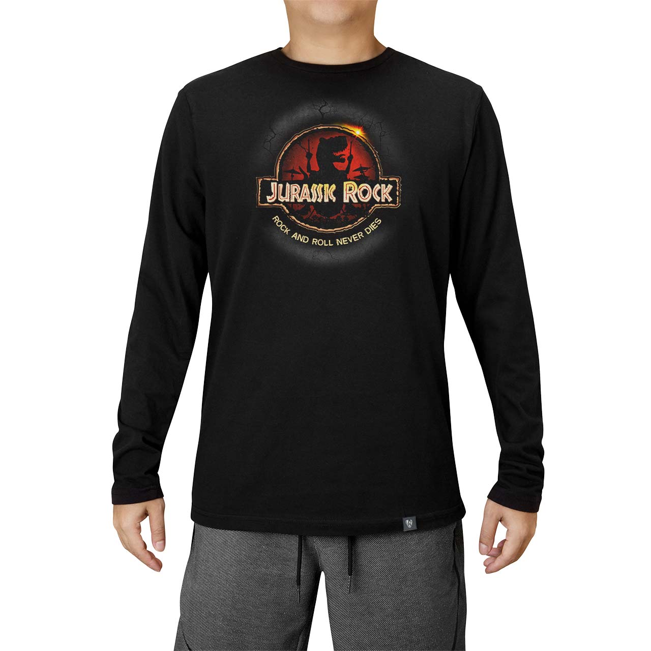 Camiseta Jurassic Rock tamanho adulto com mangas longas na cor preta masculina
