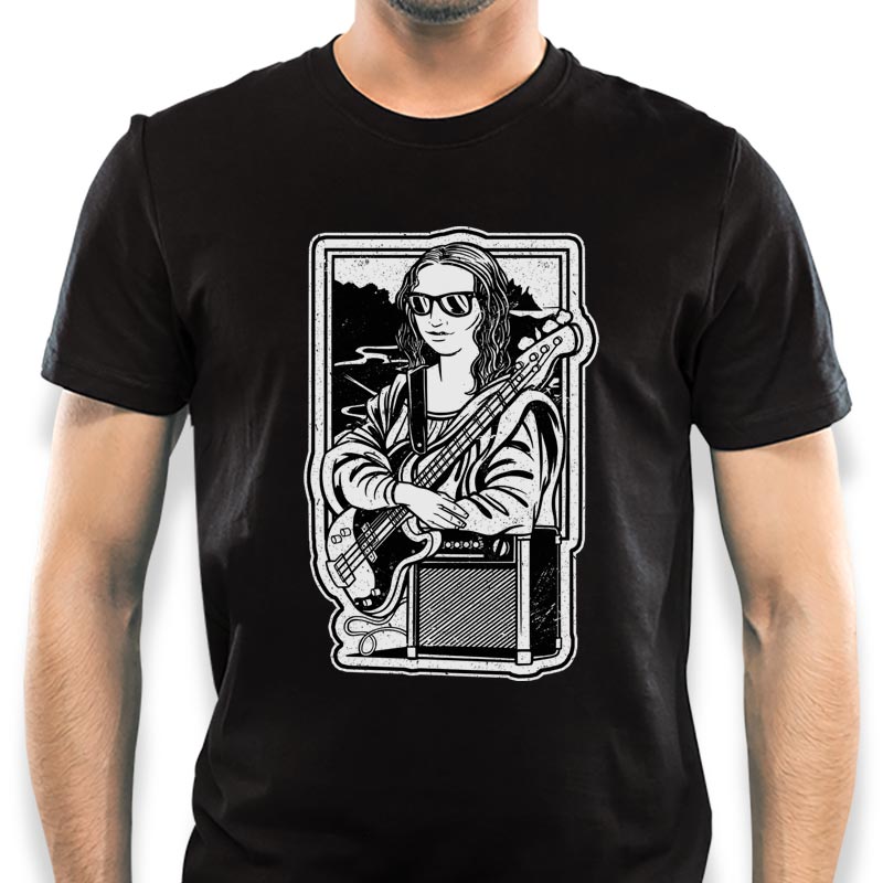 Camiseta Mona Lisa Baixista tamanho adulto com mangas curtas na cor preta premium