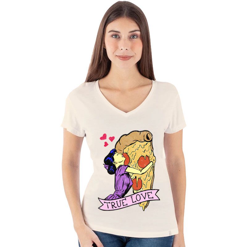 Camiseta Premium feminina off white de mangas curtas Pizza True Love