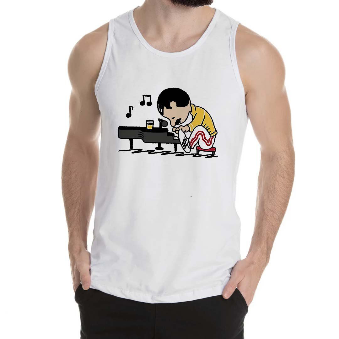 Camiseta rock Snoopy Freddy Mercury Regata Branca